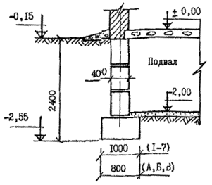 Рис. 6. План и сечение ленточных фундаментов бескаркасного здания Грунты в основании - суглинки, характеризующиеся следующими физико-механическими свойствами: плотность