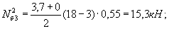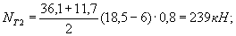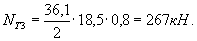 Значение хб.пр больше половины длины отсека здания l = 0,5 × 37 = 18,5 м, поэтому в соответствии с п. 8.22 расчет усилий от трения по боковой поверхности фундамента производим по формуле (24)