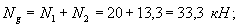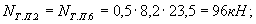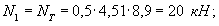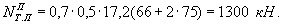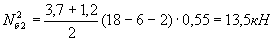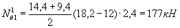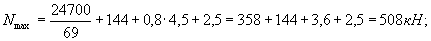 Равнодействующую усилий, действующих на каждый фундамент, расположенный по оси Б, определяем по формуле (89)
