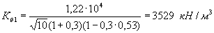 Коэффициент жесткости бокового сжатия грунта рассчитываем по формуле (37)