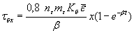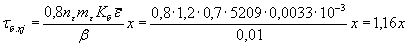 tд tx - касательные напряжения под подошвой фундамента соответственно в крайней по длине здания точке и расположенной на расстоянии х от его оси. 0,8 - коэффициент, учитывающий собственные деформации конструкций фундамента, пои деформациях сжатия земной поверхности принимается равным единице; ne и me - коэффициенты перегрузки и условия работы, принимаемые по таблицам 2 и 3; Кn - коэффициент жесткости основания при сдвиге грунта под подошвой фундамента