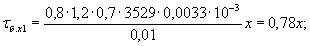 Касательные напряжения по боковой поверхности j-го фундамента, расположенного по оси Б на расстоянии х от середины отсека здания, определяем по формуле (33)