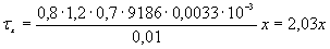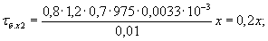 Касательные напряжения, действующие по подошве фундаментов, расположенных по оси Б на расстоянии х от середины отсека здания, определяем по формуле (19)