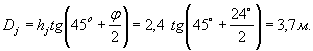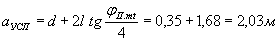 при глубине засыпки h = 2,4 м средняя длина фундамента в направлении