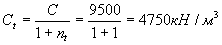 Коэффициент жесткости сжатия грунта определяем по формуле (37)