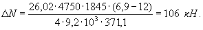 Усилия в связях распорках, расположенных между фундаментами по оси Б, определяем по формуле (88)