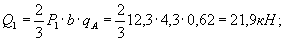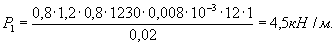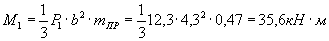 Определяем значения Q1 и М1 по формулам (61) и (62) при Р1 = 12,3 кН/м: