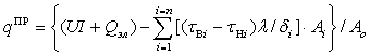 где Rкпр - приведенное термическое сопротивление испытанного оконного и дверного блоков, м2×оС/Вт; aв, aн - коэффициенты теплоотдачи внутренней и наружной поверхностей блока, принимаемые равными: aв = 8,0 Вт/(м2×оС), aн = 23,0 Вт/(м2×оС). 9.7 Среднее значение плотности теплового потока, проходящего через испытываемый оконный или дверной блок qпр, при его измерении с помощью приставной калориметрической камеры определяют по формуле