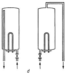 а - закрытый водонагреватель; b - водонагреватель, питаемый от отдельного резервуара; с - водонагреватель со встроенным резервуаром; d - водонагреватель со свободным сливом Рисунок 101 - Примеры аккумуляционных водонагревателей 3 Общие требованияОбщие требования - по ГОСТ Р МЭК 335-1. 4 Общие условия испытанийОбщие условия испытаний - по ГОСТ Р МЭК 335-1 со следующими дополнениями. 4.2 Дополнение к пункту Могут потребоваться дополнительные приборы в случае повреждения образца при испытаниях по 19.2, 19.3 или 19.102. Примечание - Испытания по 22.102 и 22.103 могут проводиться на отдельных баках или теплообменниках. 4.3 Дополнение к пункту При выполнении испытаний на одном приборе испытания по 22.102 и 22.103 выполняются до испытаний по разделу 19. Испытания по 22.104 и 24.102 также проводятся до испытания по разделу 19. 5 В стадии рассмотрения6 КлассификацияКлассификация - по ГОСТ Р МЭК 335-1 со следующими дополнениями. 6.1 Дополнение к пункту Водонагреватели должны быть I, II или III классов защиты от поражения электрическим током. 6.2 Первый абзац заменить следующим: «Водонагреватели, предназначенные для установки вне помещения, должны иметь степень защиты не менее IPX4 по ГОСТ 14254. Другие водонагреватели должны иметь степень защиты не менее IPX1». 7 Маркировка и инструкцииМаркировка и инструкции - по ГОСТ Р МЭК 335-1 со следующими дополнениями. 7.1 Дополнение к пункту На приборах, отличных от приборов со встроенным резервуаром, должна быть нанесена маркировка, содержащая номинальное давление в паскалях (барах). На всех приборах должна быть нанесена маркировка, содержащая номинальную емкость в литрах. На закрытых водонагревателях должно быть указано, что устройство для сброса давления должно быть вмонтировано при установке прибора, если оно не встроено в прибор. На закрытых водонагревателях, имеющих номинальное давление менее 0,6 МПа, должна быть нанесена маркировка о том, что клапан сброса давления должен быть установлен при установке прибора. Водонагреватели со свободным сливом должны иметь маркировку, расположенную вблизи подсоединения выходной трубы со следующим предупреждением: ПРЕДУПРЕЖДЕНИЕ - Эта выходная труба действует как вентиляционное отверстие и не должна подсоединяться к крану или любой арматуре, не рекомендованной изготовителем. Примечание - Это предупреждение может быть выполнено на бирке, прикрепленной к прибору. 7.12.1 Дополнение к пункту В инструкции по эксплуатации закрытых водонагревателей должны быть приведены следующие сведения: - что вода может просачиваться из выпускной трубы устройства для сброса давления и что эта труба должна оставаться открытой для атмосферы; - что устройство для сброса давления должно срабатывать регулярно для удаления известковых осадков и для проверки, что оно не заблокировано; - как можно опорожнить водонагреватель; - тип или характеристики устройства для сброса давления и как его подсоединять, если оно не встроено в прибор; - что выпускная труба, подсоединенная к устройству для сброса давления, должна быть установлена постоянно вниз и в незамерзающей окружающей среде; - тип или характеристики клапана уменьшения давления и расположение деталей для приборов, имеющих номинальное давление менее 0,6 МПа. В инструкции по эксплуатации для нагревателей закрытого типа с теплообменником должны быть указаны детали установки ко