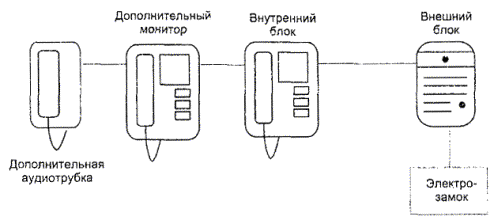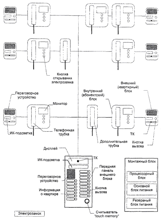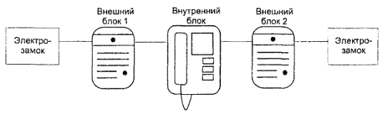 Рисунок 7 - Схемы охраны периметра 5.5 ОТКРЫТЫЕ ПЛОЩАДКИДля охраны открытых площадок (например стоянок автомобилей) применяют ТК на поворотном/наклонном устройстве и объектив с трансфокатором (рисунок 8). При минимальном фокусном расстоянии объектива проводится обзор всей площади стоянки. При максимальном фокусном расстоянии возможно определение номера автомобиля, въезжающего/выезжающего на/со стоянку(и). Телевизионная камера может быть подключена к системе распознавания номеров автомашин. Выбор объектива (с трансфокатором) с увеличением 10 и максимальным углом зрения 45° при длине и ширине открытой площадки, равной 100 м, дает результат S(amin) = 13 мм, т.е. при минимальном угле зрения объектива возможно различение номера автомобиля на экране монитора. Применение ТК высокого разрешения дает результат S(amin) = 9 мм, т.е. камеры высокого разрешения позволяют определить номер автомобиля на большем расстоянии. Рисунок 8 - Схема охраны стоянки автомобилей При организации видеоконтроля на стоянках автотранспорта следует учитывать то, что в темное время суток въезд автомобиля на стоянку происходит с включенными фарами, на фоне которых номер автомобиля может стать неразличимым. Из этого положения есть два выхода: - на въезде на стоянку автотранспорта применять дежурное освещение, компенсирующее свет фар; - использовать ТК с функцией "Инверсия белого". 6 ДОМОФОНЫДомофоны стоят несколько обособленно от других средств и систем охраны, так как сочетают в себе функции аудио- и/или видеоконтроля и управления доступом на объект. Домофоны позволяют абоненту, не подходя к входной двери, идентифицировать посетителя по изображению и/или голосу и дистанционно управлять входной дверью. Как показывает практика, в большинстве случаев мошенничества, грабежей, разбоев и прочих противоправных действий, связанных с завладением имуществом граждан, а также при посягательстве на здоровье и жизнь человека сам объект посягательства (или его близкие) добровольно открывают дверь. Домофон позволяет, соблюдая безопасную дистанцию между посетителем и хозяевами квартиры, выяснить все необходимое о посетителе и принять взвешенное решение о его допуске в дом или квартиру. Примечание - Абонентом считается лицо, обладающее правом пользования домофоном и имеющее персональный идентификатор (код, номер, ключ, кнопку) для вызова и доступа на объект. Аудио- и видеодомофоны в настоящее время представлены очень широко на российском рынке. Итальянские, корейские, польские домофоны, находящиеся в продаже, имеют приятный глазу дизайн. Однако у них есть одна особенность: они сделаны для порядочных итальянцев и честных корейцев, которым и в голову не приходит мысль испытывать домофоны на прочность всеми подручными средствами. Красивый и легкий пластик, выведенные на внешние панели крепежные винты, шурупы и т.п. - все до мелочей продумали зарубежные изготовители, чтобы домофон соответствовал эстетическим и прочим запросам потребителей этих стран. К большому сожалению, нашего потребителя это устроить не может. В большинстве своем предлагаемые изделия не учитывают ни российский климат, ни наши национальные особенности. Развороченные входные двери подъездов домов, сломанные перила, исцарапанные (со следами "пыток" тяжелыми предметами) лестничные клетки, сожженные почтовые я
