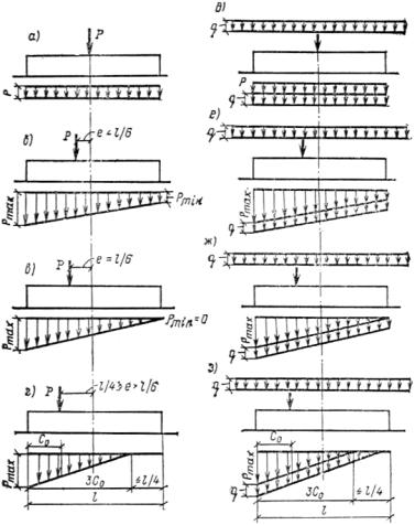 е - эксцентриситет равнодействующей внешней нагрузки по отношению к центру подошвы фундамента;