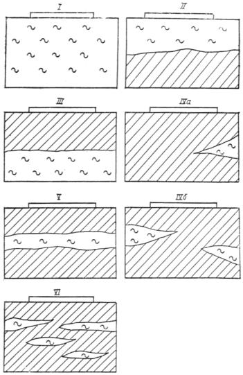 2.25. Прочность скальных грунтов, характеризуемая пределом прочности на одноосное сжатие Rc, изменяется в широких пределах и зависит от условий образования скальных пород, их минерального состава и состава цемента, а также от степени выветрелости. Для характеристики степени снижения прочности скальных грунтов при водонасыщении необходимо определять коэффициент размягчаемости в воде ksof путем испытания образцов скальных грунтов в воздушно-сухом и водонасыщенном состоянии. К скальным грунтам, значительно снижающим (до 2 - 3 раз) прочность при водонасыщении, относятся, например, глинистые сланцы, песчаники с глинистым цементом, алевролиты, аргиллиты, мергели, мелы. 2.26. Для скальных грунтов, растворяющихся в воде, необходимо указывать степень их растворимости, которая зависит от составов минеральных зерен и цемента. Магматические и метаморфические скальные грунты, а также осадочные сцементированные грунты с кремнистым цементом (кремнистые конгломераты, брекчии, песчаники и опоки) не растворяются в воде. К растворимым относятся скальные грунты, перечисленные в порядке возрастания степени их растворимости: труднорастворимые - известняки, доломиты, известковистые конгломераты и песчаники; среднерастворимые - мел, гипс, ангидрит, гипсоносные конгломераты; легкорастворимые - каменная соль. В результате фильтрации воды через трещины в растворимых скальных породах возможно образование карстовых полостей. 2.27. Скальные грунты, подвергаясь природным процессам выветривания, теряют свою сплошность в залегании, становятся трещиноватыми, а затем разрушаются до кусков различной крупности, промежутки между которыми заполняются мелкозернистым материалом. В результате выветривания строительные свойства скального грунта ухудшаются. Степень выветрелости скальных грунтов Kwr оценивается путем сопоставления плотности r образца выветрелой породы в условиях природного залегания с плотностью невыветрелой (монолитной породы) (табл. 2). Для магматических пород величина плотности монолитной породы может быть принята равной величине плотности частиц. Таблица 2