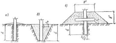 d, dn, d - глубина заложения фундамента соответственно от уровня планировки, от поверхности природного рельефа и от пола подвала;