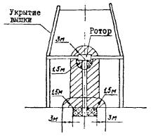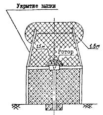 Рис. 2. Буровая установка с укрытием и привышечным сооружением для бурения скважин на морю и месторождениях, содержащих сероводород