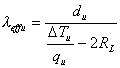 8.7 Плотность стационарного теплового потока qu через образец, испытываемый на приборе, собранном по асимметричной и симметричной схемам, вычисляют соответственно по формулам: qu=fueu, (11)