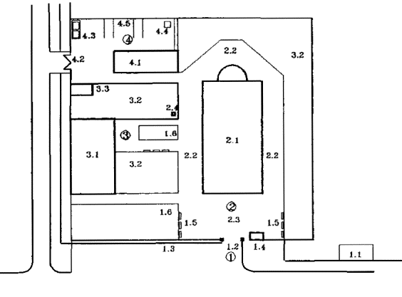 1. Входная зона 1.1 Остановка общественного транспорта; 1.2 Въездные и входные ворота; 1.3 Автостоянка; 1.4 Церковный киоск; 1.5 Скамьи для отдыха; 1.6 Цветник 2. Храмовая зона 2.1 Храм; 2.2 Круговой обход; 2.3 Площадка перед входом; 2.4 Дренажный колодец 3. Вспомогательная зона 3.1 Церковно-причтовый дом; 3.2 Озелененная территория; 3.3 Туалеты для прихожан 4. Хозяйственная зона 4.1 Хозблок с гаражом; 4.2 Хозяйственный въезд; 4.3 Мусоросборник; 4.4 Печь для сжигания записок; 4.5 Стоянка автотранспорта ПРИЛОЖЕНИЕ ЕПРАВОСЛАВНОЕ БОГОСЛУЖЕНИЕ И ФУНКЦИОНАЛЬНО-ПЛАНИРОВОЧНЫЕ СХЕМЫ ХРАМАПРАВОСЛАВНОЕ БОГОСЛУЖЕНИЕ [4, 5] Православное богослужение может быть заказным или общественным. Заказное богослужение совершается периодически по потребностям отдельных лиц, так называемые требы (чин крещения, венчания, погребения, освящение воды, молебны и др.). Чин крещения совершается в храме или крещальне; чин венчания - в храме; чин погребения, освящения воды, молебны, панихиды - в храме, часовне или на открытом месте. Общественное богослужение совершается постоянно по общим потребностям от лица всей Церкви. Оно состоит из молитв и песнопений и должно совершаться, как правило, в особо устроенном и освященном здании - храме по установленному Церковью Уставу в соответствии с каноническими правилами и церковной традицией. В монастырских, соборных и городских храмах, имеющих несколько священников, богослужение должно совершаться ежедневно, а в храмах сельских и имеющих одного священника - по возможности чаще и обязательно в воскресные и праздничные дни. Постоянных служб всего девять: вечерня, повечерие, полуночница, утреня, часы (1, 3, 6, 9-й) и Литургия, составляющие суточный круг и несколько видоизменяемые в течение недели и года. В современной приходской практике Церкви существуют три главные суточные службы: вечерня, утреня и Литургия, к которым присоединяются остальные службы. В предпраздничные дни вечерня и утреня могут объединяться во всенощное бдение. Православные богослужения совершаются клириками и мирянами стоя с коленопреклонениями. Сидеть разрешается только в редкие, определенные Уставом моменты службы, а также определенным категориям прихожан (больным, инвалидам). В притворе должны стоять оглашенные (готовящиеся к Крещению) и кающиеся; в средней части храма - верные (крещеные христиане); в алтаре - священнослужители; на клиросе - певчие. Во время богослужения внимание молящихся обращено в основном в сторону алтарной преграды с иконами святых и в направлении движения священнослужителей. Каждое богослужение предваряется колокольным звоном - благовестом и далее трезвоном во все колокола. В колокола звонят и в определенные моменты службы. Крестный ход совершается несколько раз в году, в том числе: на Пасху, во время храмовых праздников и др. Движение клириков и мирян происходит через западный вход наружу и далее вокруг храма против часовой стрелки. ВЕЧЕРНЯ Богослужение вечерни содержит воспоминание о временах Ветхого Завета от сотворения мира до пришествия на землю Спасителя. В молитвословиях, песнопениях и священнодействиях Церковь прославляет Бога за сотворение мира, напоминает о грехопадении прародителей, возбуждает верующих к сознанию грехов и молению перед Богом о их прощении, прославляет оправданных Богом святых. В начале службы священнослужители входя