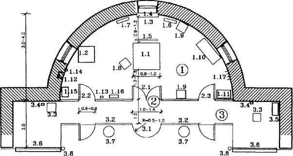 Примечание - Площади помещений зала заседаний Церковного Совета и классных комнат должны быть не менее 20 м2, а остальных помещений - не менее 8 м2. 7.15 Туалетные с умывальниками должны размещаться при трапезной, при крещальне, при комнатах отдыха церковного причта и в зонах пребывания посетителей, в том числе в составе входной группы помещений. Общее количество санитарных приборов в мужских и женских туалетных следует предусматривать из расчета 1 унитаз на каждые 15 человек в пропорции 1:2. При туалетных следует предусматривать умывальники из расчета 1 умывальник на каждые 20 человек. Для священнослужителей следует предусматривать отдельную туалетную. В тамбуре перед туалетной должна быть предусмотрена вешалка для одежды. Туалетные для прихожан, располагаемые отдельно от туалетных для причта, с входом непосредственно с храмовой территории, следует проектировать из расчета 1 прибор на 100 прихожан по числу вместимости храма в пропорции 1:2 в мужских и женских туалетных. 7.16 Проектирование зданий богаделен, гостиниц, жилых домов причта, келейных корпусов, воскресных школ и гимназий, а также зданий иного назначения, которые могут входить в состав приходских и монастырских комплексов, епархиальных центров, следует осуществлять по заданию на проектирование с соблюдением требований нормативных документов по проектированию соответствующих объектов. 7.17 Хозяйственный блок приходского комплекса, как правило, должен включать в свой состав гараж, мастерские и хозяйственный склад. Площадь гаража принимается из расчета 18 м2 на одну машину и 30 м2 на один автобус; площадь мастерских - по заданию на проектирование, площадь склада 18 - 60 м2. 7.18 Здания хозяйственного назначения должны быть, как правило, отдельно стоящими с подвалом или цокольным этажом. Отдельные помещения (стоянки автомобилей, кладовые) могут быть сблокированы с церковно-причтовыми домами. 7.19* При наличии, например в монастырях, производственных зданий и сооружений их проектирование следует вести с соблюдением требований СНиП 2.09.02. 8 ЕСТЕСТВЕННОЕ И ИСКУССТВЕННОЕ ОСВЕЩЕНИЕ, ШУМОЗАЩИТА, ЗВУКОИЗОЛЯЦИЯ И АКУСТИКА ПОМЕЩЕНИЙ8.1 Естественное и искусственное освещение зданий и сооружений храмовых комплексов следует проектировать в соответствии со СНиП 23-05, а зданий храмов - с учетом требований настоящего раздела. Система освещения храма включает естественное и искусственное освещение. Искусственное освещение помимо электрического включает освещение от лампад, висящих перед иконами, и свечей, стоящих на подсвечниках. 8.2 К уровню освещенности, направленности и месту источника освещения каждой структурной части храма предъявляются свои специфические требования, обусловленные символикой и функциональным назначением этих частей. Свет в православном храме является образом Божественного света и допускается внутрь храма в определенной системе. 8.3 Естественное освещение притвора должно быть ограниченным. 8.4 Естественное освещение средней части храма осуществляется преимущественно из верхней зоны через окна в стенах и в световых барабанах глав, размеры которых определяются архитектурным решением фасадов. Площадь световых проемов рекомендуется предусматривать в пределах 10 % площади пола. Естественное освещение алтаря осуществляется, как правило, через три светопроема, централь