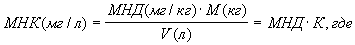 12. Обоснование величины ПДК (ОДУ) веществ в водеДля обоснования величины ПДК (ОДУ) исследуемого вещества в воде сопоставляются пороговые величины по органолептическому и общесанитарному признакам вредности и максимальная недействующая концентрация по токсилогическому признаку вредности (МНК). 12.1. МНК считается из величины МНД с учетом среднего веса человека и суточного водопотребления, включающего питьевую и используемую для приготовления пищи (чая, кофе) воду, по формуле:
