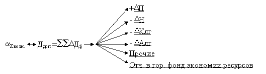 Обобщенная формула, отражающая процесс развития достигнутой технологии производства материальных и энергетических ресурсов, а также технологии строительства обеспечивающей экономию ресурсов выглядит следующим образом: Эi > Эб×(1-е (DК/Кi))×aк , где: Эi - достигнутый в проекте удельный показатель расхода каждого вида ресурсов (при его положительном значении, которое соответствует условию (Эi/Эб)< 1); Эб - базовый удельный показатель расхода каждого вида ресурса Кi; DК - доля капитальных вложений, вызвавшая достигнутый эффект; е - основание натурального логарифма (равное 2,718...); DЭi; - изменение эффективности при возрастании капитальных вложений для достижения намеченного результата; DКi - уровень капитальных вложений (КВ), которые необходимы для достижения поставленной цели; aк - корректирующий коэффициент. 4.2. В качестве обобщенной зависимости (векторного типа) имитирующей взаимосвязь между величиной экономии ресурсов и материальным вознаграждением за принятие мер, направленных на внедрение новейших достижений науки и техники (в том числе «ноу-хау») в результате организационно-технических мероприятий, позволяющих экономить конкретные виды ресурсов, принята следующая математическая модель. Пусть будут определены следующие параметры: - Рбi - базовый уровень расходования i-го ресурса, i = 1,...,n, где n - кол-во ресурсов; - Рi - достигнутый уровень расходования i-го ресурса , i = 1 ,...,n; - (Рбi- Рi) / Рбi - достигнутый уровень экономии i-го ресурса, Рбi >Рi , i=1, ,n; - bi - удельный вес экономии i-го ресурса, приведенный к удельному показателю (кв.м. оющ. пл. и проч.), i=1 ,...,n; - bэк = (b1, b2, ..., bn) - вектор удельной совокупной экономии (по всем видам ресурсов); - aj - норматив вознаграждения от дополнительной прибыли в результате экономии ресурсов, полученной на j-ом этапе освоения проекта, j=1,...,m (от j-го источника дополнительного дохода), где m - количество этапов освоения проекта (количество источников дополнительной прибыли, в т.ч. снижение налогов и проч.); - aэк=(a1, a2,..., am) - вектор норматива вознаграждения, j=1,...,m; - ki,j - коэффициенты приоритетности (коррелирующие), i=1,...,n, j=1,...,m, образующие матрицу К размером m´n. Тогда «основная формула определения норматива вознаграждения» запишется следующим образом: