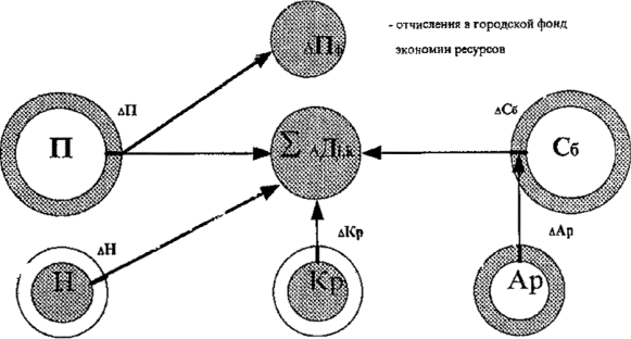 БЛОК-СХЕМА МЕХАНИЗМА ФОРМИРОВАНИЯ СОВОКУПНОГО ДОХОДА ПО РЕЗУЛЬТАТАМ ЭКОНОМИИ МАТЕРИАЛЬНЫХ, ЭНЕРГЕТИЧЕСКИХ И ИНЫХ РЕСУРСОВ (графическая модель формирования фонда стимулирования за экономию ресурсов)
