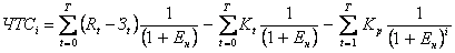 где: ЧТС - суммарная величина чистой текущей стоимости на всю застраиваемую территорию; ЧТСj - суммарная величина чистой текущей стоимости на j очередь строительства; j - номер очереди; "n" - количество очередей. Чистая текущая стоимость на "j" очередь определяется по формуле: