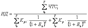 10.12. Индекс доходности (ИД) или рентабельность (РИ) представляет собой отношение суммы чистой текущей стоимости (ЧТС) к сумме бюджетных ассигнований (и приравненных к ним внебюджетных средств), направляемых на инвестирование застраиваемых территорий с учетом строительства по очередям