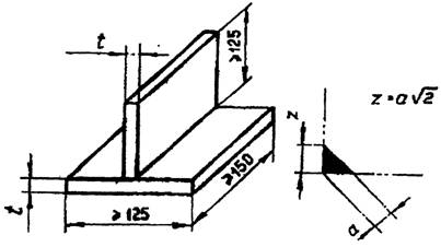 при t ³ 6 мм, а £ 0,5 t, при t < 6 мм, 0,5t £ а £ (Z = 0,7 t)
