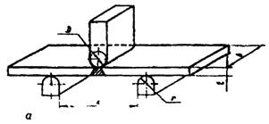 1.13.11. Испытаниям на статический изгиб стыковых соединений листов и труб толщиной 3 мм и выше подлежат 4 образца, из которых 2 образца подлежат изгибу со стороны усиления шва (рис.7а), а другие 2 образца - со стороны корня шва (рис.7б). При толщине листов и стенок труб 12 мм и выше допускается выполнять испытание образцов «на ребро» (боковой изгиб) согласно рис.7в. При этом испытаниям подлежат не менее 4 образцов. 1.13.12. Металлографическому исследованию макроструктуры подвергают образцы (шлифы), вырезанные из угловых соединений Контроль выполняют с целью выявления возможных внутренних дефектов (трещин, непроваров, пор, шлаковых и неметаллических включений и др.), а также для установления размеров дефектов и глубины проплавления шва. Контроль производят путем исследования поверхности шлифа, вырезанного поперек сварного шва. Контролируемая поверхность должна включать сечение шва с зоной термического влияния и прилегающим к ней участком основного металла. При металлографическом исследовании контролю подлежит одна сторона шлифа. Металлографические исследования угловых швов должны выполняться на шлифах, вырезаемых из контрольного соединения равномерно по длине (периметру) сварного шва. Вырезку шлифов из контрольных соединений, выполненных в положениях В1 и В2 (рис 2), следует производить таким образом, чтобы ими были представлены участки шва, сваренные в нижнем вертикальном и потолочном положениях. 1.13.13. Испытания на излом выполняют с целью выявления возможных внутренних дефектов в сечении шва в месте его излома. 1.13.14. Вырезку заготовок для изготовления образцов для механических испытаний, металлографических исследований, измерений твердости и испытаний на излом производят механическим путем режущим или абразивным инструментом. Допускается вырезку заготовок выполнять плазменной или газовой резкой при условии последующей механической обработки заготовок в зоне резки на глубину не менее 2 мм. Краевые участки стыкового и таврового контрольных сварных соединении пластин, выполненных ручными способами сварки, длиной не менее 25 мм подлежат удалению (рис. 8 и 9). При автоматической и механизированной сварке в среде защитных газов и порошковой проволокой при толщине металла более 10 мм, автоматической сварке под флюсом, электрошлаковой сварке длину краевых участков принимать в соответствии с указаниями ГОСТ 6996.
