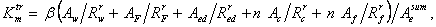 где b - коэффициент, учитывающий дополнительные теплопотери, связанные с ориентацией ограждений по сторонам горизонта, с ограждениями угловых помещений, с поступлением холодного воздуха через входы в здание: для жилых зданий b = 1,13, для прочих зданий b = 1.1; Aw, АF, Aed, Ac, Af - площадь соответственно стен, заполнений светопроемов (окон, фонарей) наружных дверей и ворот, покрытий (чердачных перекрытий), цокольных перекрытий, м2;