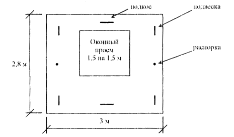 = 4,17 м2·°С/Вт. Площадь панели равна А = (3 · 2,8) - (1,5 · 1,5) = 6,15 м2.