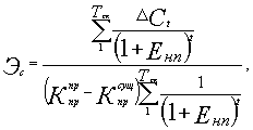 где Кпр - приведенные к одному базовому моменту времени единовременные затраты по данному варианту, определенные в соответствии с п. 2.5; Ен - нормативный коэффициент сравнительной эффективности капитальных вложений в соответствии с п. 2.14; Сt - текущие затраты по данному варианту в t году; (tс - срок сравнения вариантов в годах; t - число лет между базовым годом и годом осуществления затрат. Началом срока сравнения вариантов является базовый год (см. п. 2.5). Конец срока выбирают так, чтобы по его истечении различия между вариантами по показателям, характеризующим потребительский эффект и требуемые для этого затраты, были бы несущественными с учетом точности определения исходных показателей. По вариантам с более ранними сроками ввода в действие затраты, рассчитываемые по формуле (2.2), уменьшаются на приведенный к базовому году размер экономического эффекта (п. 1.5), получаемого в течение дополнительного периода функционирования введенных в действие объектов. Аналогично учитывают экономический эффект от ввода в действие отдельных пусковых комплексов и очередей строительства. 2.7. При сравнении вариантов с различными сроками службы срок сравнения ограничивается сроком службы наиболее долговечного варианта. При этом по менее долговечным вариантам должны быть учтены дополнительные затраты на их усиление, замену или переустройство в течение срока службы наиболее долговечного варианта, приведенные к базовому году (в доле, обеспечивающей одинаковый срок функционирования с наиболее долговечным вариантом). 2.8. В тех случаях, когда существует значительная неопределенность информации об условиях функционирования объекта в перспективе (дороги в районах нефтедобычи, лесоразработок, горнодобывающей промышленности и др.), срок сравнения вариантов может быть ограничен периодом продолжительностью 20 лет. 2.9. Затраты, одинаковые по размерам и срокам их осуществления во всех вариантах, при определении приведенных затрат могут не учитываться. 2.10. При сравнении вариантов с учетом длительных сроков их функционирования (tc равно 35 годам и более) суммарные приведенные затраты, минимум которых определяет наиболее эффективный вариант, могут рассчитываться по приближенной формуле, являющейся упрощенной модификацией формулы (2.2),