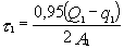12.3.3.9 Испытание следует считать законченным в соответствии с указаниями 11.4.5. 12.3.3.10 По окончании испытания необходимо записать максимальное сопротивление перемещению штампов-лопастей при определенном нормальном давлении на грунт Q1, кН, или максимальное перемещение срезных пластин и колонны внутренних стержней при определенном нормальном давлении на грунт Q2, кН, которое было зафиксировано в процессе испытания. 12.3.3.11 В процессе испытания ведут журнал, форма которого приведена в приложении Б. 12.3.4 Обработка результатов 12.3.4.1 По данным испытаний вычисляют сопротивления грунта срезу t1 МПа, при испытании грунта в стенках опытной скважины с помощью штампов-лопастей и t2, МПа, при испытании грунта ниже забоя опытной скважины или в массиве с помощью подвижных срезных пластин по формулам:
