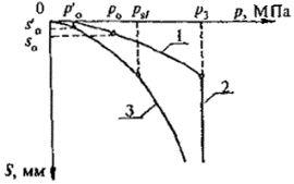 где rd плотность грунта в сухом состоянии, т/м3; rw - плотность воды, принимаемая равной 1 т/м3; wsat - влажность грунта в насыщенном водой состоянии (Sr > 0,8), доли единицы; w - природная влажность грунта, доли единицы; V - объем замачивания грунта, равный произведению площади шурфа (или замачиваемого участка котлована) на глубину замачивания и на коэффициент 1,2, учитывающий растекание воды, м3. ПРИЛОЖЕНИЕ Д(рекомендуемое) Образец графического оформления результатов испытания грунта штампомГрафик S = f(р) Масштаб графика: по горизонтали: 40 мм - 0,1 МПа для р; по вертикали: 10 мм - 1 мм для S.