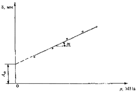 10.5.3 По вычисленным значениям строят график зависимости относительной осадки штампа от давления d = f(p) (приложение Н). На графике проводят осредняющую прямую методом наименьших квадратов или графическим методом. За начальные значения р и d (первая точка, включаемая в осреднение) принимают давление, равное напряжению szg,0, за конечные значения рn и dn - такие, при которых нагрузка вызывает приращение осадки, превышающее ее значение на предыдущей ступени не более чем в два раза. 10.5.4 Коэффициент оттаивания Аth по графику d = f(p) принимают равным отрезку, отсекаемому осредняющей прямой на оси ординат. Коэффициент сжимаемости m, МПа, вычисляют по формуле