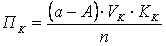 где ПК - производительность катка, м2/с; а - ширина полосы, м; А - ширина перекрытия смежных полос укладки, м; КК - безразмерный коэффициент использования (0,85-0,90); n - число проходов катков по одному следу при граничных условиях VK = 0,68 м/с (2 км/ч) и l = 25-30 м, определяется по формуле: