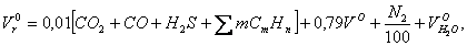 дымовых газов, образующихся при полном сгорании 1 кг (1 нм3)