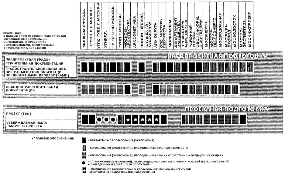* - При одностадийном проектировании заключение Мосгосэкспертизы выдается на стадии рабочего проекта объекта. Приложение 3 к ПоложениюУтверждено приказом Минприроды Российской Федерации от 18.07.94 №222 приложение К положению ОБ ОЦЕНКЕ ВОЗДЕЙСТВИЯ НА ОКРУЖАЮЩУЮ СРЕДУ В РОССИЙСКОЙ ФЕДЕРАЦИИ ПЕРЕЧЕНЬ ВИДОВ И ОБЪЕКТОВ ХОЗЯЙСТВЕННОЙ И ИНОЙ ДЕЯТЕЛЬНОСТИ, ПРИ ПОДГОТОВКЕ ОБОСНОВЫВАЮЩЕЙ ДОКУМЕНТАЦИИ НА СТРОИТЕЛЬСТВО, КОТОРЫХ ОЦЕНКА ВОЗДЕЙСТВИЯ НА ОКРУЖАЮЩУЮ СРЕДУ ПРОВОДИТСЯ В ОБЯЗАТЕЛЬНОМ ПОРЯДКЕ(Утратило силу. Изм. от 19.04.2005 г.). Приложение 4 к ПоложениюПЕРЕЧЕНЬ ЛИНИЙ ГРАДОСТРОИТЕЛЬНОГО РЕГУЛИРОВАНИЯКрасные линии - границы территории улично-дорожной сети, выделенной из остальной части территории города. За пределы красных линий в сторону улицы или площади не должны выступать здания и сооружения. В пределах красных линий допускается размещение конструктивных элементов дорожно-транспортных сооружений (опор путепроводов, лестничных и пандусных сходов подземных пешеходных переходов, павильонов на остановочных пунктах городского общественного транспорта). В исключительных случаях с учетом действующих особенностей участка (поперечных профилей и режимов градостроительной деятельности) в пределах красных линий допускается размещение: - объектов транспортной инфраструктуры (площадки отстоя и кольцевания общественного транспорта, разворотные площадки, площадки для размещения диспетчерских пунктов); - отдельных нестационарных объектов автосервиса для попутного обслуживания (АЗС, минимойки, посты проверки СО); - отдельных нестационарных объектов для попутного обслуживания пешеходов (мелкорозничная торговля и бытовое обслуживание). Линии застройки - линии, устанавливаемые для зданий, строений, наземных сооружений, размещаемых с отступом от красных линий, величина которого определяется градостроительными нормативами. Синие линии - границы акваторий рек, а также существующих и проектируемых открытых водоемов, устанавливаемые по нормальному подпорному горизонту. Границы полосы отвода железных дорог - границы территории, предназначенной для размещения существующих и проектируемых железнодорожных путей, станций и других железнодорожных сооружений, ширина которых нормируется в зависимости от категории железных дорог, конструкции земляного полотна и др., и на которой не допускается строительство зданий и сооружений, не имеющих отношения к эксплуатации железнодорожного транспорта. Границы технических зон строящихся и проектируемых линий метрополитена - границы территорий, резервируемых для строительства линий метрополитена мелкого заложения и сопутствующих им сооружений временного и постоянного характера, на которых запрещается строительство капитальных сооружений. Границы технических зон действующих линий и сооружений метрополитена - границы территорий, на которых размещены эксплуатируемые линии метрополитена мелкого заложения и сопутствующие им сооружения, на которых допускается хозяйственная деятельность только по согласованию с организацией, эксплуатирующей метрополитен. Границы технических (охранных) зон действующих и проектируемых инженерных сооружений и коммуникаций - границы территорий, предназначенных и используемых для строительства и эксплуатации наземных и подземных транспортных и инжен