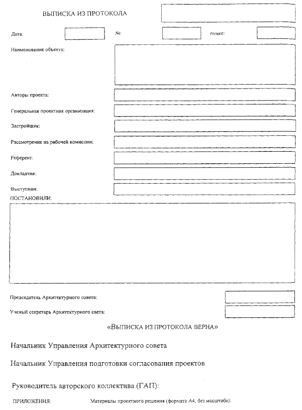 Приложение 8 к ПоложениюУтверждено распоряжением первого заместителя Премьера Правительства Москвы от 20.10.97№ 1092-РЗП «О порядке оформления поручений на разработку материалов исходно-разрешительной документации» ВЫПИСКА ИЗ ПРОТОКОЛА