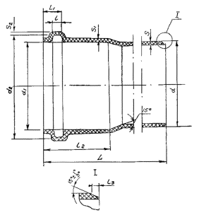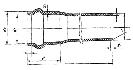 Рис.1. Канализационная раструбная труба из ПВХ (размеры см. табл. 1) Сортамент (выборочно) и типоразмеры раструбных канализационных труб из ПВХ по ТУ 6-19-307-86 (размеры в мм)