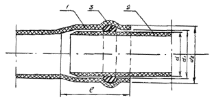 Рис. 3а. Раструбное соединение канализационных труб из ПВХ, уплотняемое резиновым кольцом круглого сечения: 1- гладкий конец трубы; 2-раструб; 3-резиновое кольцо 2.8. Резиновые уплотнительные кольца круглого сечения должны отвечать требованиям ТУ 38-105.1818. В частности, твердость кольца по Шору А не должна превышать 46 усл. ед. Сортамент и типоразмеры резиновых колец приведены в табл.6. Таблица 6 Сортамент и типоразмеры (мм) резиновых колец круглого сечения для уплотнения раструбных соединений канализационных труб из ПВХ