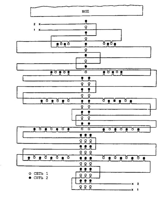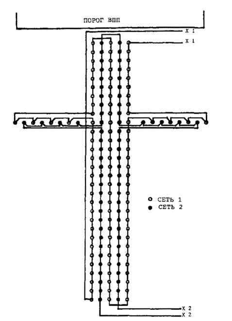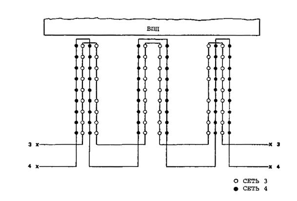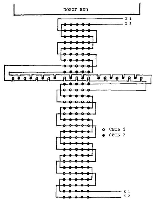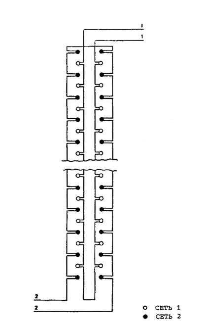 Рис. 3-6. Посадочные огни ВПП, запитываемые попеременно от двух последовательных сетей