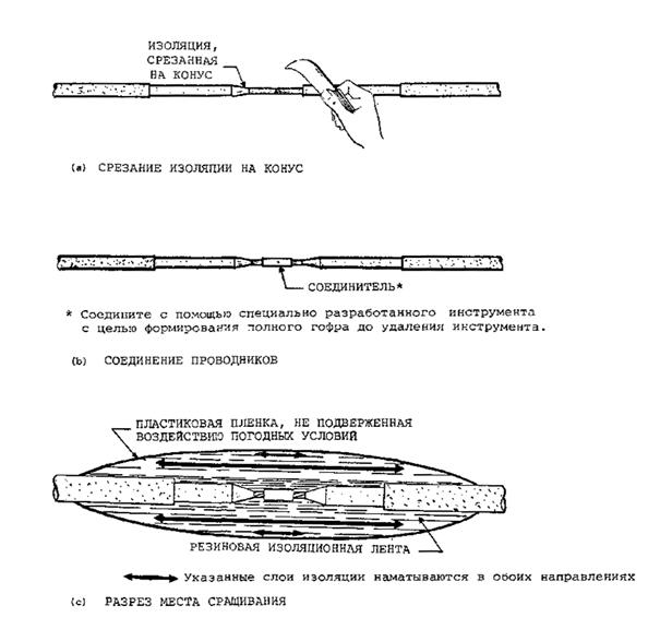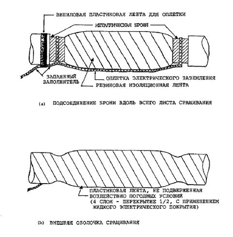 Рис. 5-2. Сращивание кабелей с металлической броней с использованием изоляционной ленты
