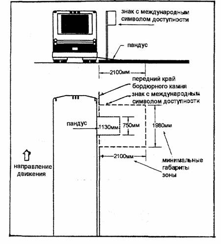 Зона остановки автобуса (троллейбуса) для посадки и высадки инвалидов из салона с пониженным полом или подъемником для кресел-колясок 3.4. АВТОБУСНЫЕ (ТРОЛЛЕЙБУСНЫЕ) ОСТАНОВКИ [3]