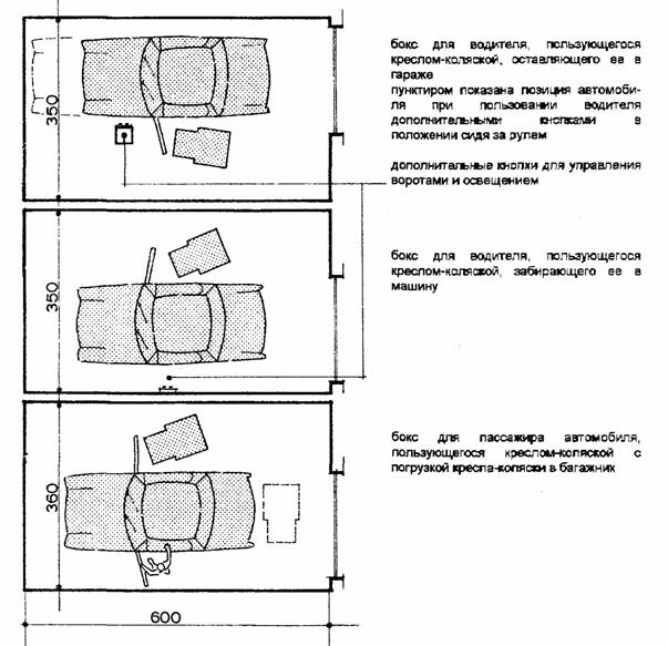 Б. Вариант для объектов периодической посещаемости Размеры даны в мм 6. ГАРАЖИ6.1. БОКСЫ ДЛЯ АВТОМОБИЛЕЙ ДЛИНОЙ ДО 400 СМ [6]