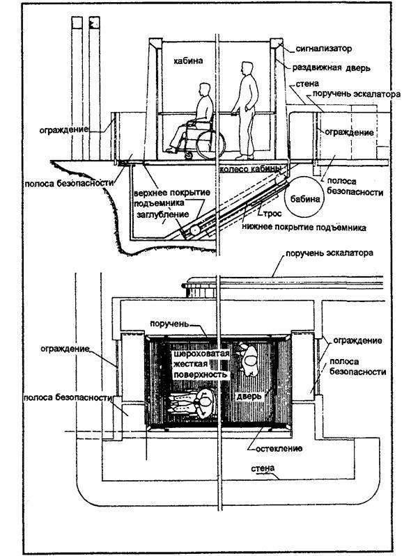 План и продольный разрез кабины (см. 7.2.) 7.4. УСТРОЙСТВО ЛИФТА ПО УКЛОНУ [8]