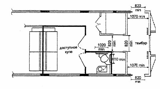 Б. Вагон с доступным туалетом Размеры даны в мм 8.2. ПЛАНИРОВКА И ОБОРУДОВАНИЕ [5]