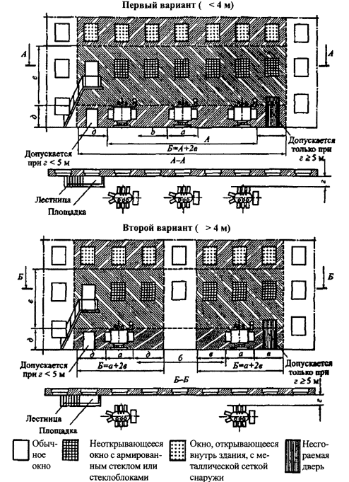 7.10.57. Металлические переплеты в окнах и аэрационных шахтах допускается устанавливать на высоте не менее 3 м от уровня пола в одноэтажных и второго этажа в двухэтажных корпусах.