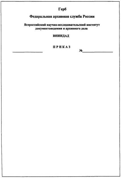 отдела (1 межстрочный интервал) (2 межстрочных интервала) Инициалы, фамилия Инициалы и фамилия в реквизите «Подпись» оформляются на уровне последней строки наименования должности, например: Начальник Главгосэкспертизы России _______________________________Ю.Б. Жуковский Наименование вида документа оформляется прописными буквами, например: ПРИКАЗ 6. Требования к учету, использованию и хранению бланков с воспроизведением государственного герба Российской Федерации, гербов субъектов Российской Федерации6.1. Бланки документов с воспроизведением Государственного герба Российской Федерации и гербов субъектов Российской Федерации (далее - гербовые бланки) подлежат учету. 6.2. Гербовые бланки хранят в надежно запираемых и опечатываемых шкафах. 6.3. Уничтожение гербовых бланков осуществляют по акту с отметкой в регистрационно-учетной форме. 6.4. Контроль за изготовлением, использованием и хранением гербовых бланков возлагают на подразделение организации, ответственное за делопроизводство организации (управление делами, канцелярия, общий отдел). Лица, персонально ответственные за учет, использование и хранение бланков, назначаются распорядительным документом руководителя организации. 6.5. Регистрационно-учетные формы включают в номенклатуру дел организации. 6.6. Проверку наличия, использования и хранения гербовых бланков проводят не реже раза в год комиссией, назначаемой распорядительным документом руководителя организации. О проведенных проверках делают отметки в учетно-регистрационных формах после последней записи. В случае обнаружения нарушений при изготовлении, учета, хранении и использовании гербовых бланков комиссия проводит служебной расследование, результаты которого оформляют актом и доводят до сведения руководителя организации. 6.7. Допускается тиражирование средствами оперативной полиграфии организации документов на гербовом бланке, предназначенных для рассылки, при условии заверения каждой копии документа печатью организации. Приложение 1к Порядку подготовки и оформления документов СХЕМЫ
