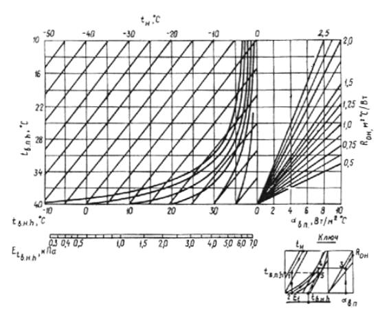 нахождения температуры наружной поверхности воздушной прослойки и Рис. 4. Номограмма для