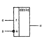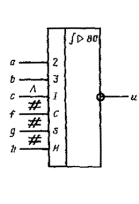 (Измененная редакция, Изм. № 1). 1.8. Входы аналогового элемента изображают с левой стороны, выходы - с правой стороны прямоугольника. Допускается другая ориентация УГО, при которой входы располагают сверху, а выходы - снизу. 1.9. Выводы элементов могут быть обозначены указателями и метками. Указатели изображают на линии контура или около линии контура УГО на линии связи. Метки образуют из прописных букв латинского алфавита, арабских цифр и специальных знаков и помещают в дополнительных полях. 1.9.1. Применяют следующие обозначения указателей выводов: 1) прямой 2) инверсный 3) не несущий логической информации 1.9.2. Обозначения основных меток выводов приведены в табл. 2. Таблица 2